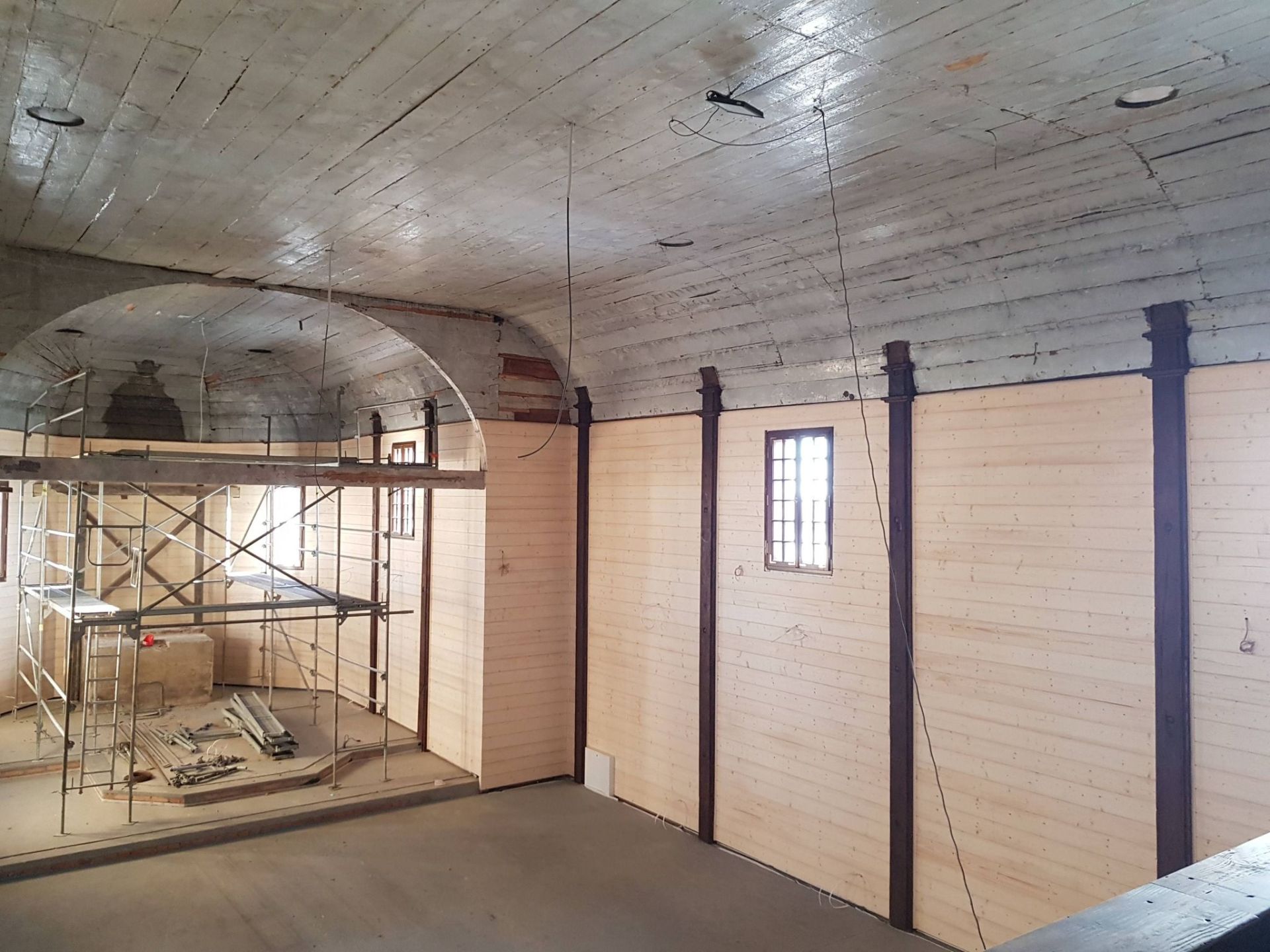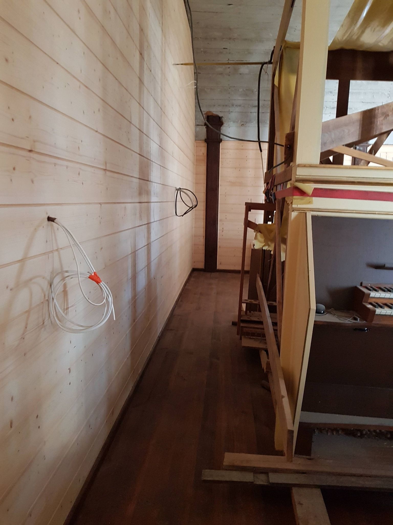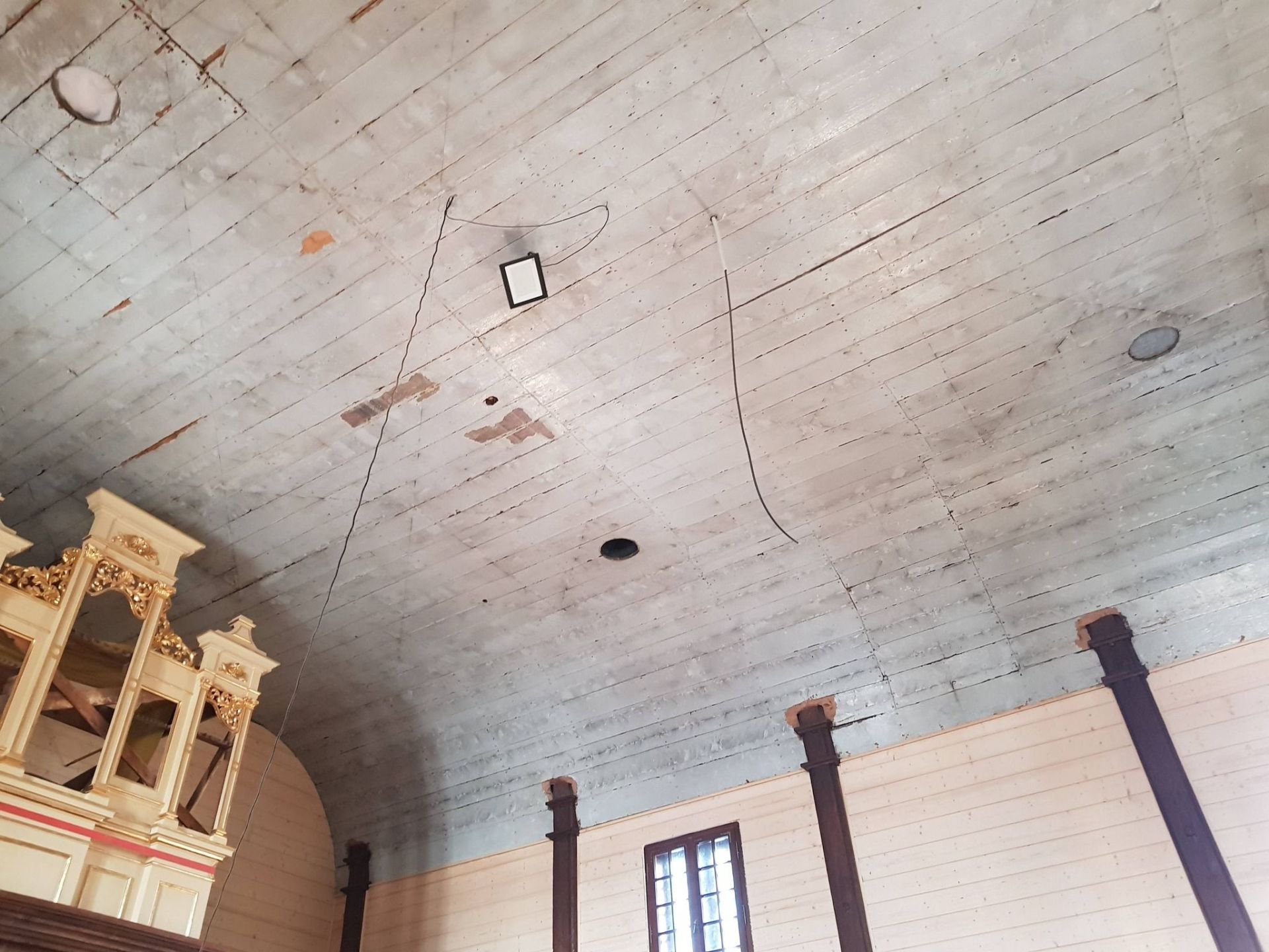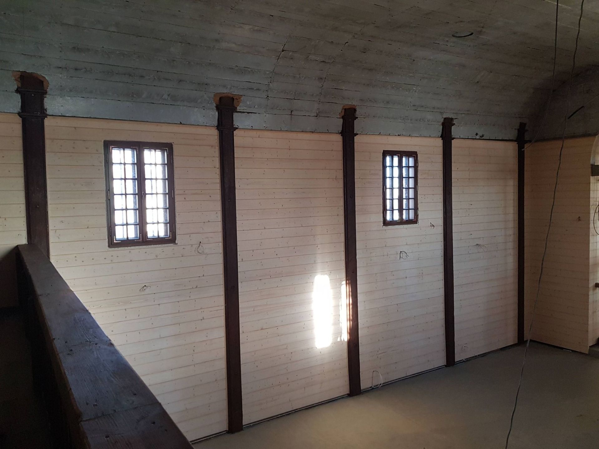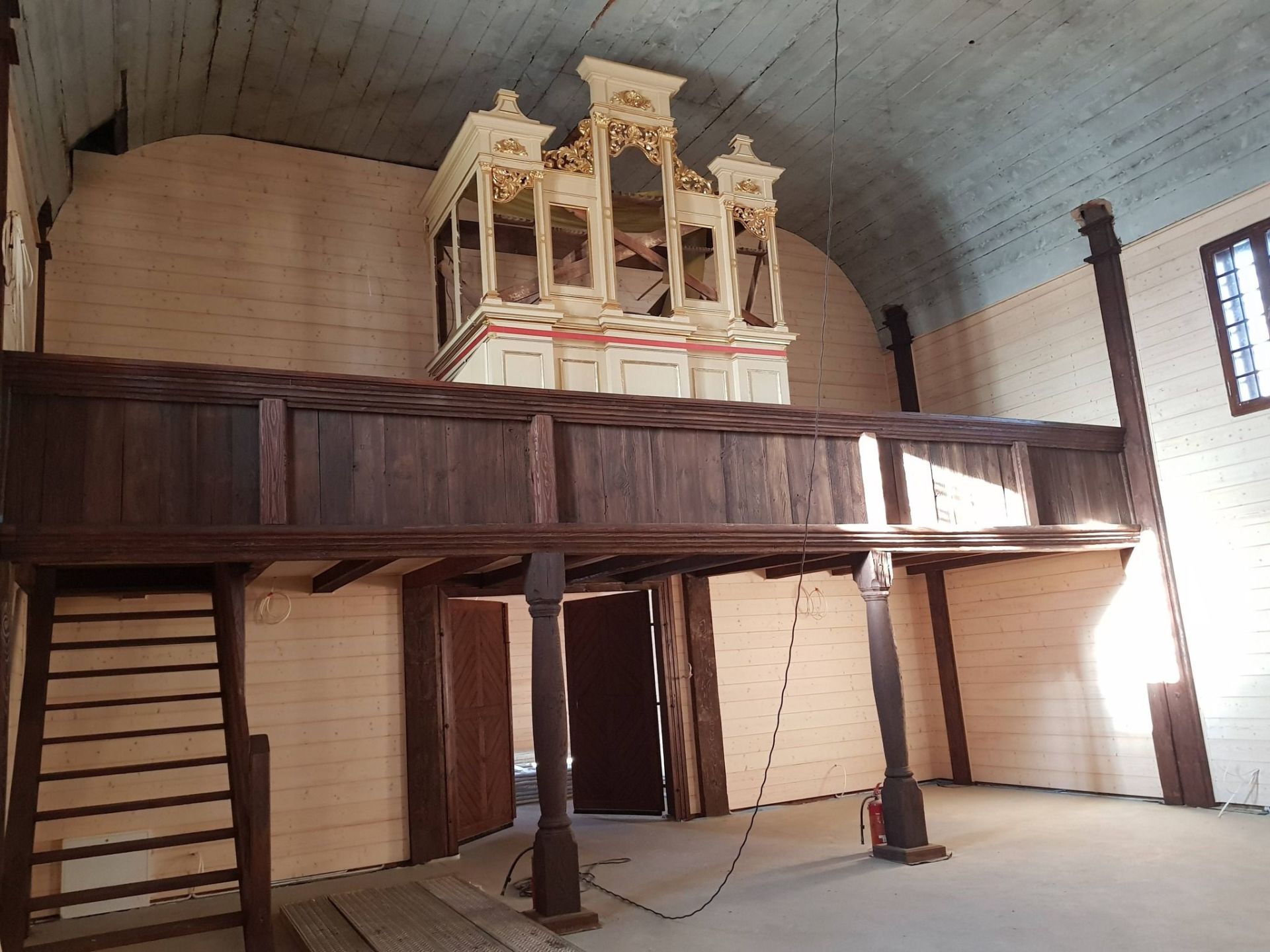 Zakończony został pierwszy etap prac przy remoncie kościoła. Wzmocniono konstrukcję budynku poprzez wymianę uszkodzonych elementów, wykonano dach, połozono szalunki zewnętrzne i wewnętrzne, wykonano chór.